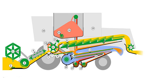 اجزای کمباین با توجه به شکل مقابل به شرح زیر است: